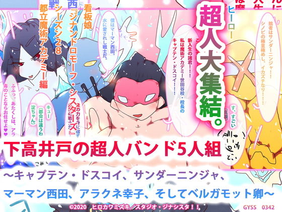 下高井戸の超人バンド5人組〜キャプテン・ドスコイ、サンダーニンジャ、マーマン西田、アラクネ幸子、そしてベルガモット卿〜このエロ同人作品の詳細情報