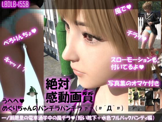 【▲100】一ノ瀬廻里の電車通学中の風チラ(ショートソックス+水色パンティ編)スローモーション付き!このエロ同人作品の詳細情報
