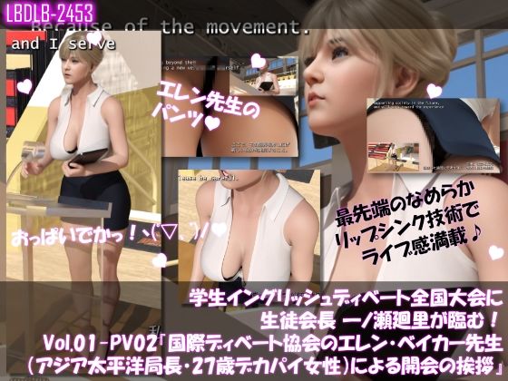 学生イングリッシュディベート全国大会に生徒会長 一ノ瀬廻里が臨む!Vol.01-P『国際ディベート協会のエレン・ベイカー先生(アジア太平洋局長・27歳女性)による開会の挨拶』(PV02:黒Tバックショーツ) | Libido-Labo【ダウンロード】