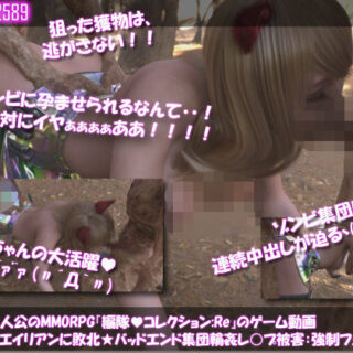 【▲100】廻里が主人公のMMORPG『編隊コレクション:Re』ゲーム動画(Vol.09:ゾンビの集団によるレ○プ被害に遭ってしまう:立ちバック!)このエロ同人作品の詳細情報