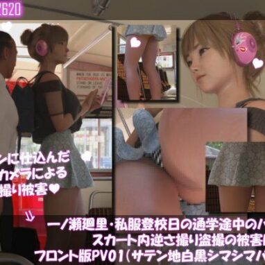 Libido-Labo一ノ瀬廻里・私服登校日の通学途中のバス内でスカート内逆さ撮り盗撮の被害に遭う:PV12(サテン地ピンクストライプフルバックパンティ) | Libido-Labo【ダウンロード】