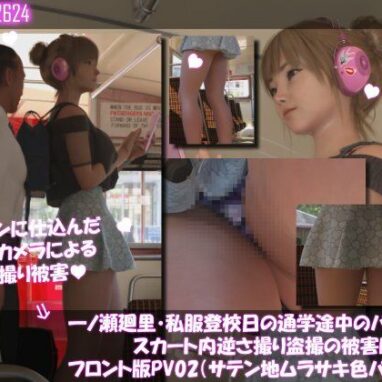 Libido-Labo一ノ瀬廻里・私服登校日の通学途中のバス内でスカート内逆さ撮り盗撮の被害に遭う:フロント版PV02(サテン地紫色パンティ) | Libido-Labo【ダウンロード】